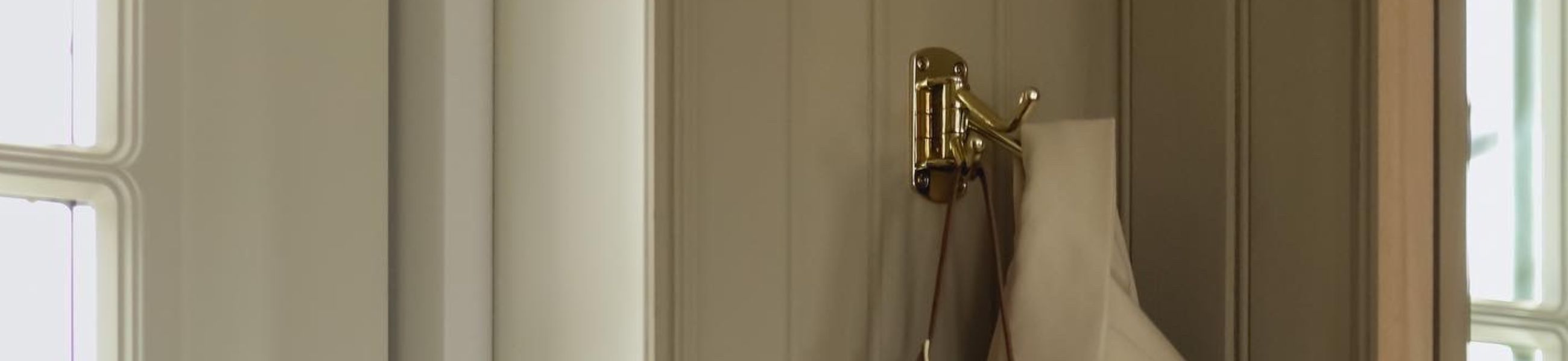 - Badrum – En elegant krok i mässing passar perfekt för handdukar och badrockar.