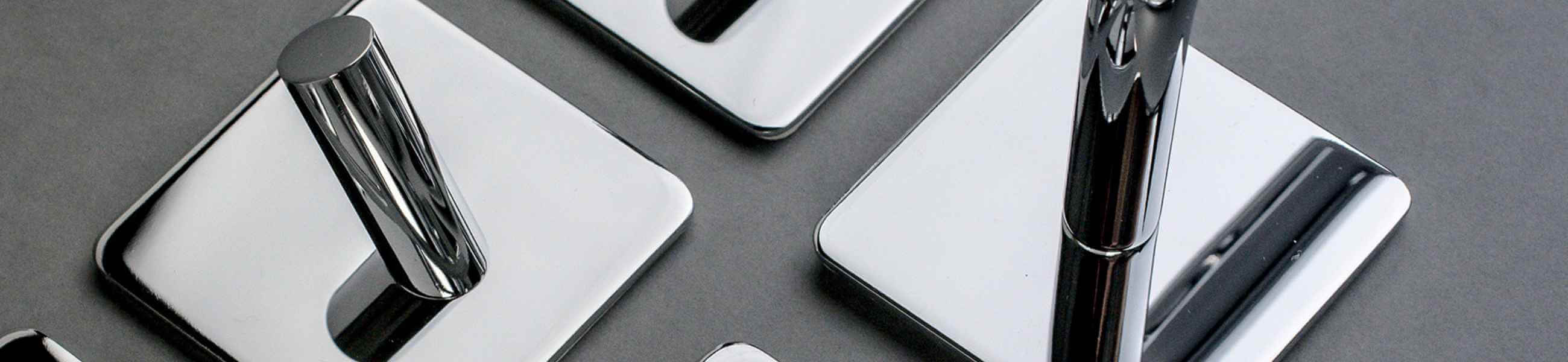 Vill du få ett nytt badrum av små detaljer? Vi har gjort det enkelt och i våra badrumsset finns allt du behöver till ditt badrum. Våra badrumsset innehåller badrumsdetaljer såsom; självhäftande krokar, toaborste, reservpappershållare och toalettrullehållare. Alla produkter har självhäftande 3M-tejp på baksidan vilket gör att de är enkla att montera och du behöver inte några verktyg eller borra hål i väggen. Våra kit finns i 4 olika utföranden; Krom, mattsvart, rostfritt stål och polerad mässing, så du enkelt kan hitta ett badrumsset som passar din inredning och stil.