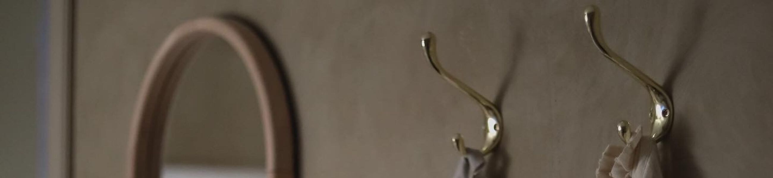 Skapa enkelt en röd tråd genom att skruva upp krokar i samma färg eller material som något annat i din befintliga inredning. Det är fantastiskt vad en väggkrok kan göra för ett rum!