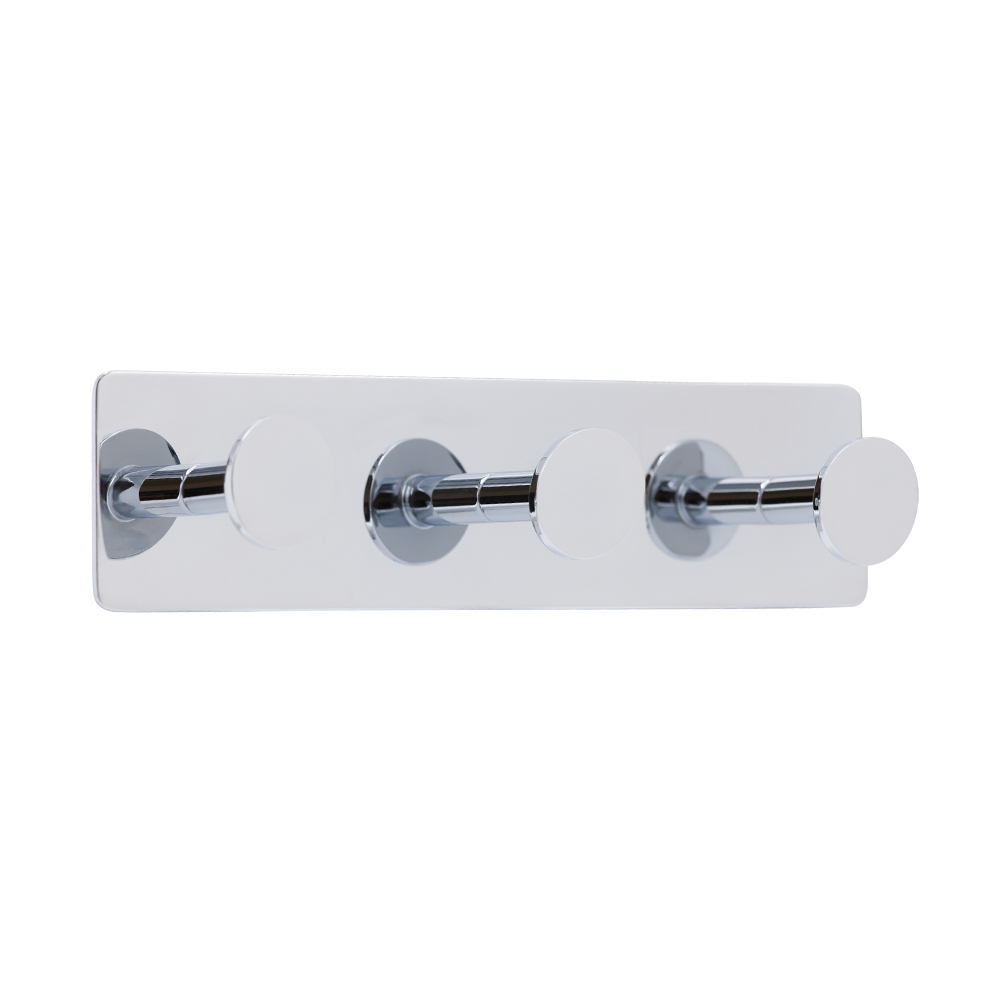 3M tejpen på baksidan av produkten skapar oändliga möjligheter till snabb förändring i ditt badrum, vi har inredningsdetaljer som både är snygga och praktiska. Krokar för både handdukar och morgonrocken. Bakplattans rundade kanter skapar en mjuk känsla och de cirkulära detaljerna längst ut på kroken skapar en stilren design, men är även praktisk då exempelvis handduken inte ramlar ned lika lätt vid upphängning.