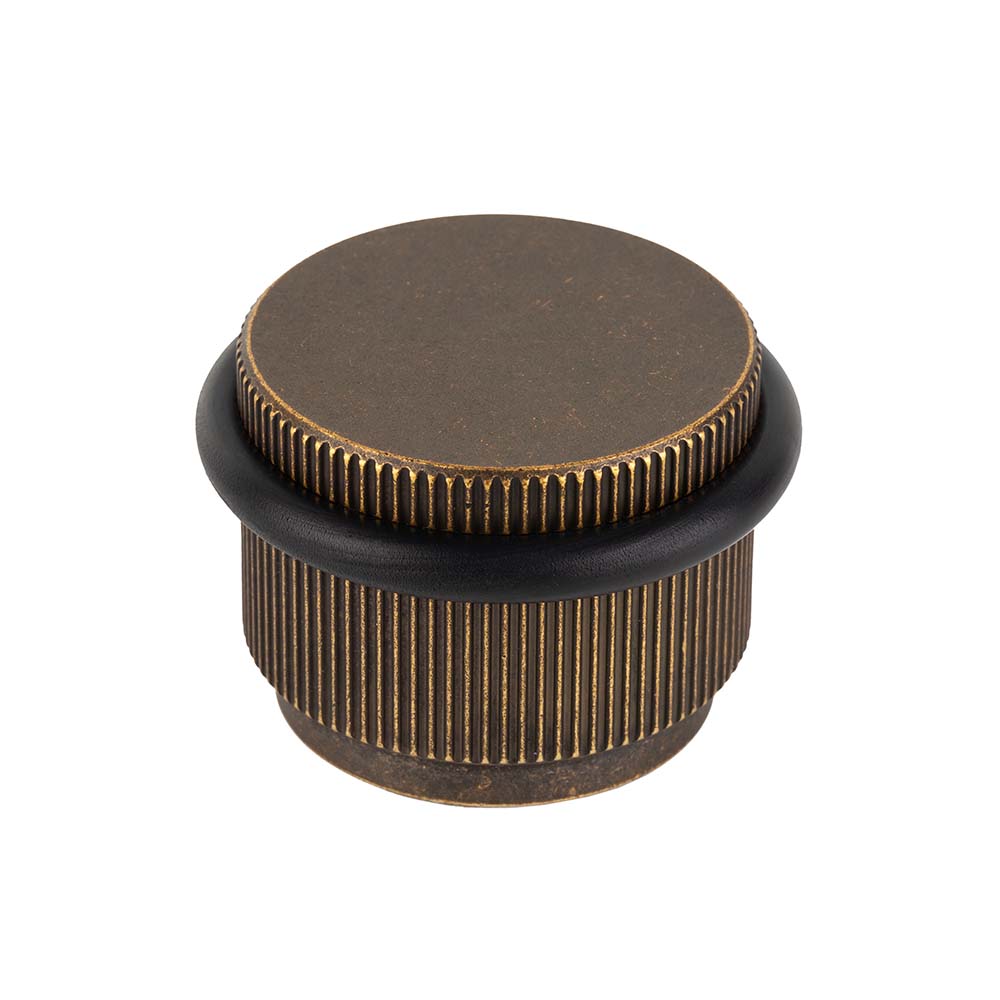 Dörrstopp Arpa i antik mässing har en elegant räfflad yta och en rund design som omsluts av en ring i gummi för att skydda dina dörrar.
