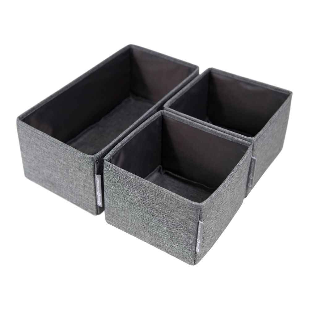 Denna praktiska förvaringslösning består av tre delar en större låda och två mindre, perfekta för att organisera allt från underkläder och strumpor till accessoarer och småplagg. Setet kommer i en mjuk grå ton som smälter in i de flesta hem och garderober.