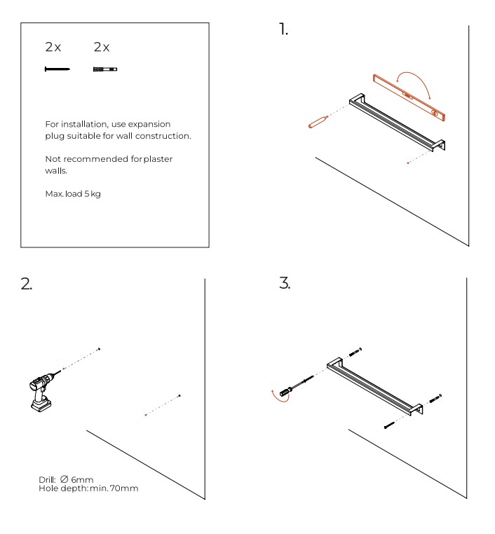 Fästs på beständiga släta ytor som exempelvis kakel, lackerade eller fanerade skivmaterial etc. Vi rekommenderar inte att sätta produkterna över fog, målad vägg eller våtrumstapet.