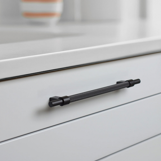 Handtag Pitch är ett lättrat handtag tillverkat i aluminium vilket gör handtaget oerhört hållbart och dess lättrade yta gör att greppet blir skönt och otroligt bra. Den lättrade yta bidrar till att ge handtaget en exklusive och elegant känsla av industrialistisk design. Handtag Pitch finns i två längder och med eller utan matchande bricka.