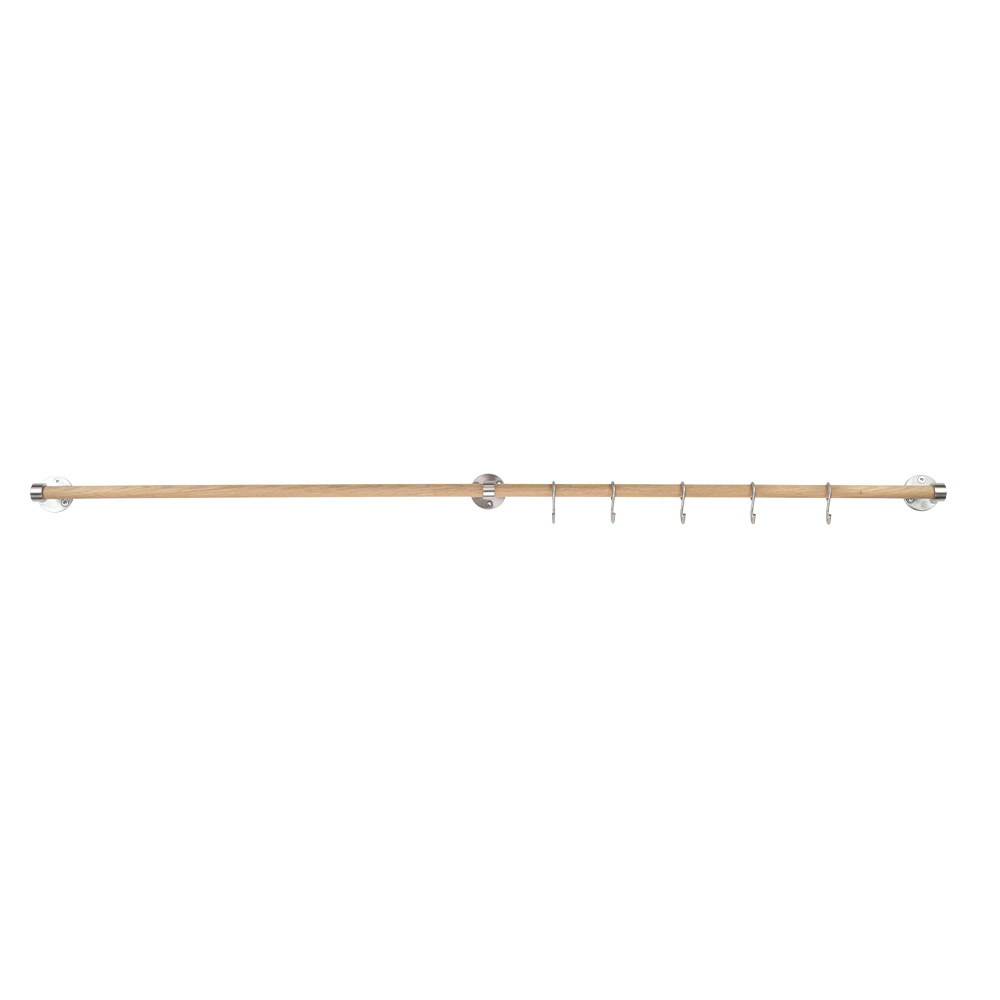 Förlängningstång Aveny i obehandlad ek till Köksreling Aveny. Innehåller hållare i borstat rostfritt stål, 3 st krokar samt skruvar.