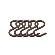 I paketet ingår fem krokar tillverkade av mässing som är pulverlackerade för att få sin mattsvarta finish. Krokarna går enkelt att torka av med en lätt fuktad trasa, undvik rengöringsmedel.