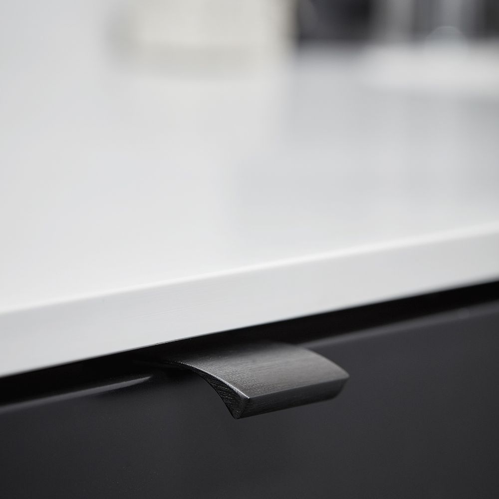 Profilhandtag Edge Straight i borstad svart är ett modernt handtag med ett exklusivt utseende och känsla. Edge Straight passar bra i både kök och på fristående möbler, såsom garderober, byråer och kommoder. Dess lätt böjda framkant gör handtaget greppvänligt, det finns i olika längder och i flera olika utföranden. Handtaget skruvas bakifrån vilket betyder att det smälter in bra i dess omgivning. Edge Straight framhäver även sin skandinaviska design oavsett vilken miljö det placeras i och lyfter känslan i rummet.