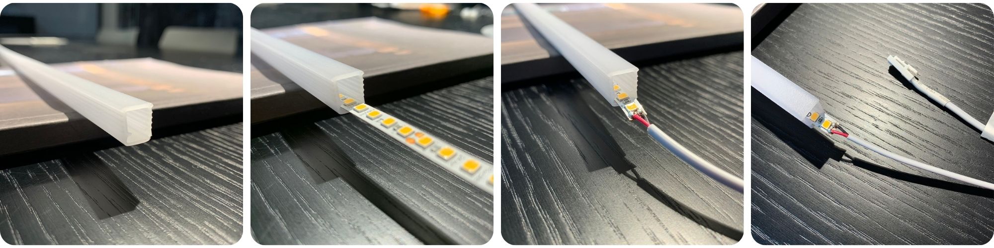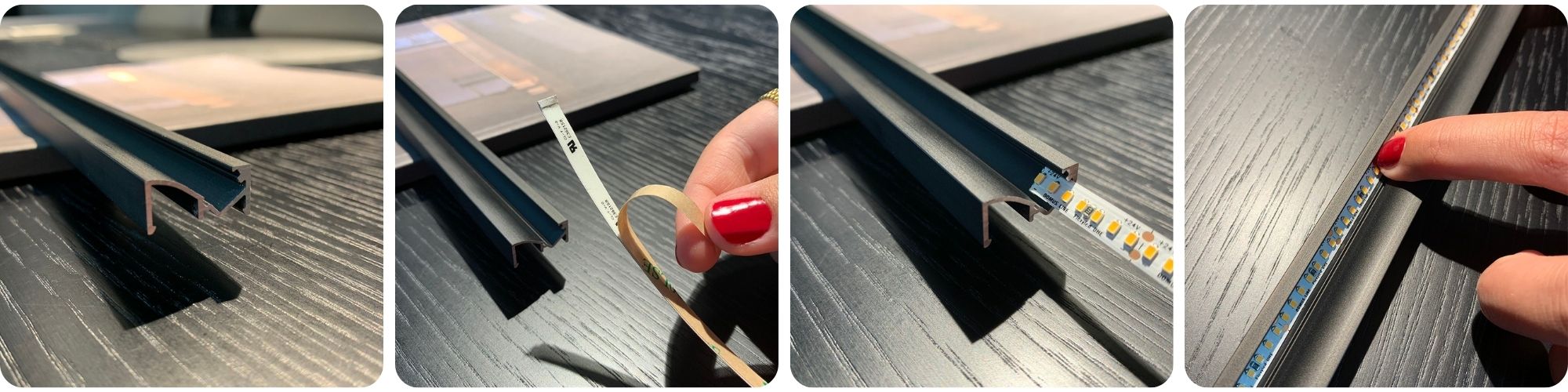 3. Nu är det dags att sätta ihop belysningens olika delar och detta kan variera beroende på vilken led-profil du valt. Nedan förklarar vi hur man sätter ihop och monterar två olika profiler.