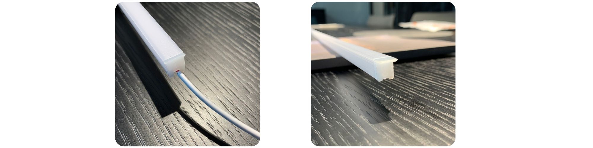 Flexy LED AT6 som enkelt monteras utanpåliggande med 3M tejp eller trycks lätt in i frästa spår.