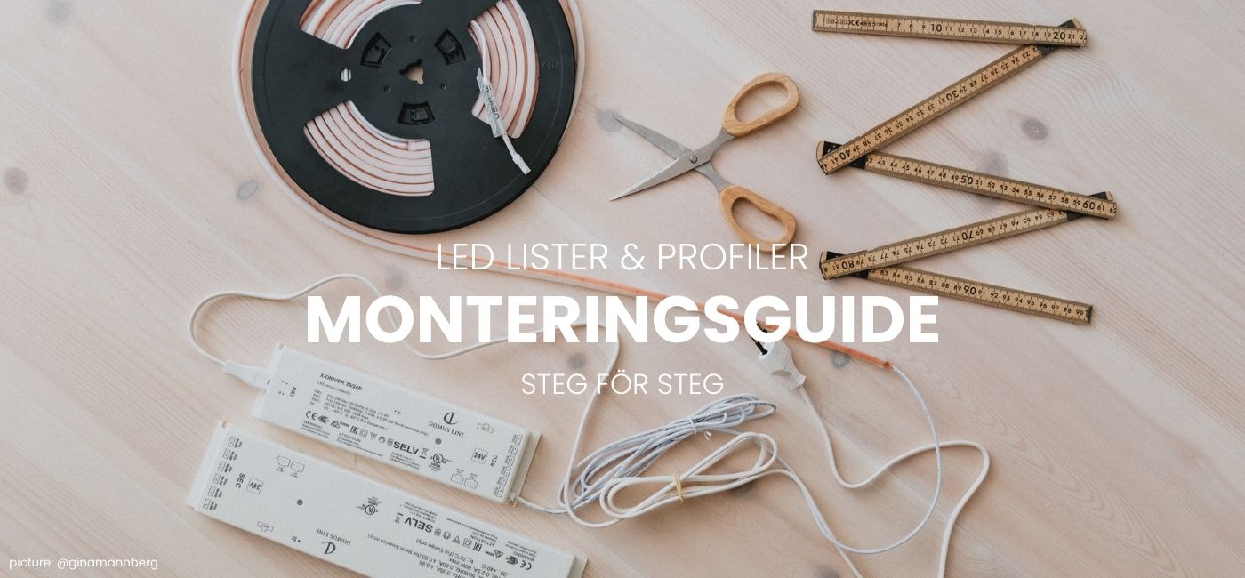 För att skapa en mysig känsla i hemmet är det viktigt med bra belysning. Belysning som lyser upp tillvaron en mörk höstdag eller som förlänger en härlig sommarkväll. Oavsett ändamål har vi belysningen för dig som vill skapa en behaglig miljö att komma hem till. För att underlätta och ge dig en förhandsvisning på hur det är att montera upp LED-profiler har vi skapat en guide som du enkelt kan följa. Våra LED-profiler är enkla att montera, både utanpåliggande och infällda.